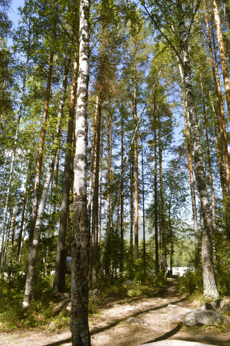Лес встречает нас запахом хвои.Высокие деревья защищают от палящего солнца.