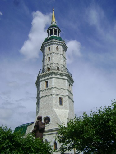 А вот и сама башня-колокольня, которая имеет высоту 53,4 метра! Башня-колокольня на Красной горке построена рекордно быстро – всего лишь за 6 месяцев! Строители трудились в две смены. Открыта для посетителей в 2006 году накануне 1600-летия прославления святителя Иоанна Златоуста. Строительство планировалось завершить ко дню памяти святого – 26 ноября, но объект сдали досрочно. Обнаружилось интересное совпадение – на колокольню ведут 184 ступеньки, ровно столько же, сколько длилось её строительство.