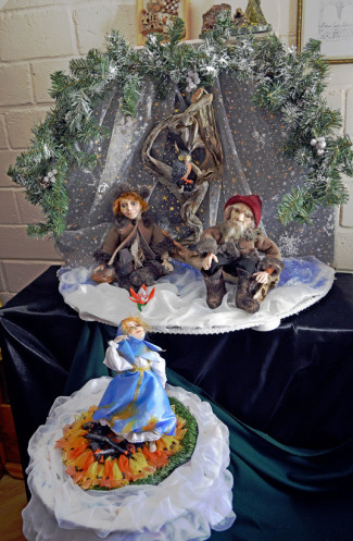 Экскурсовод Анна Горб нас уже дожидалась у входа и пригласила всю нашу большую туристическую группу зайти в башню - колокольню. Поднявшись немного вверх по чугунной лестнице, попадаем в выставочный зал. Экспозиция посвящена уральскому писателю Павлу Бажову. Она открылась буквально накануне нашей встречи, такчто мы фактически были в числе первых посетителей этой уникальной и интересной выставки! Мы просто окунулись в мир сказов П. Бажова. Экскурсовод с увлечением рассказывала о творчестве знаменитого писателя, при этом "разыгрывала" настоящие сцены из его сказов при помощи кукол. Вот, например, сюжет из "Серебряного копытца":