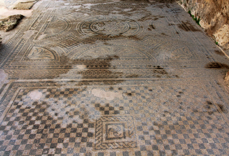 Людей вокруг так и не прибавилось, за исключением одной машины с нашими соотечественниками. Спросил у них про акведуки, но и эта семья приехала так же, как мы - "да, хотим посмотреть, вот, собирались у вас спросить, где они" :) Ну хорошо, будем считать, что акведуки мы увидели, едем дальше... Следующий пункт - чудом сохранившаяся венецианская мозаика на месте древней Лаппы.