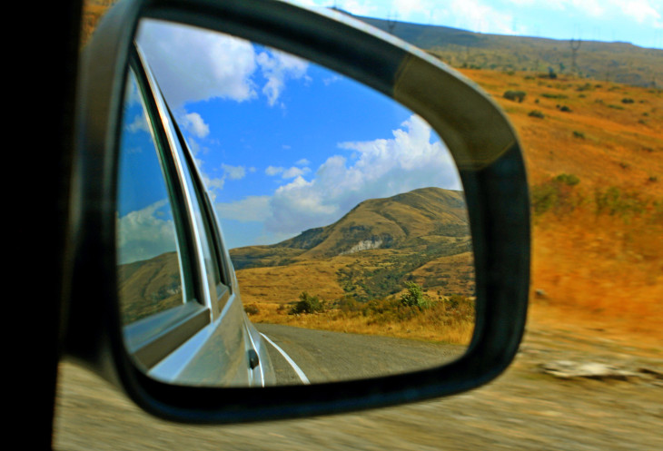 На следующий день после торжественного мероприятия мы с уже супругом собрали вещи и, попрощавшись со всеми, выехали в Ереван. Напротив кинотеатра «Москва» располагается офис компании «Hertz», сдающей машины напрокат. Мы заранее бронировали внедорожник Suzuki Jimny, но нам предоставили машину классом выше по той же цене - Renault Duster. Мы заключили договор, оформили страховку, внесли предоплату, осмотрели машину на предмет царапин и после того, как освоили управление, выехали из столицы в два часа дня.