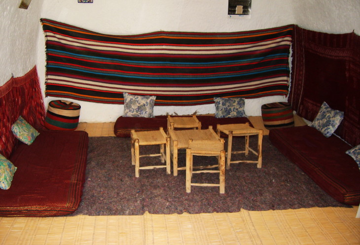 Быт,конечно примитивен, но тем не менее, часть населения Туниса живет в самодельных пустынных пещерах по сей день. Троглодиты- это обитатели пещер Матматы. Нас пригласили за чисто символическую плату погостить в таком жилище, посмотреть и сфотографировать, угостили лепешками с медом и оливковым маслом.
