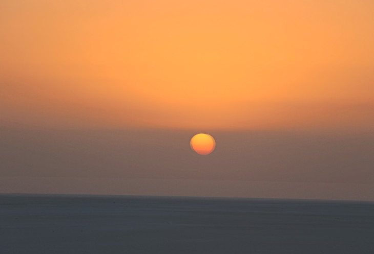 По дороге мы должны были встретить рассвет над соляной пустыней, к сожалению была дымка и не получилось лицезреть красное "яблоко" восходящее над горизонтом.