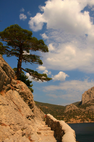 Нат тропой - почти отвесная скала с каким-то чудом выросшими на ней деревьями... Особенно хороша одинокая сосна над самой тропой.