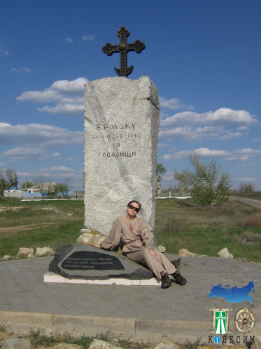 Путь наш лежал в сторону Трехостровского огневого святилища. Еще в отделе офицер нам поведал о том, что место это очень древнее и что анализы почвы показали ряд интересных фактов. Один из них – трехсотлетнее непрерывное поддержание огня. Второй – поддерживался огонь исключительно дубом. В момент, когда мы свернули с трассы в степь, стало понятно, что без посторонней помощи найти древнее культовое сооружение не удастся. По пути нам встретился огромный цех и элеватор «Садов Придонья», а так же памятник Ермаку возле старинной колокольни. Дальше был паром местного масштаба. Это был, наверное, один из самых маленьких паромов всех моих путешествий и в действие его приводил отдельно плывущий буксир. Несмотря на размеры и конструкции, паром оказался надежным и дешевым.