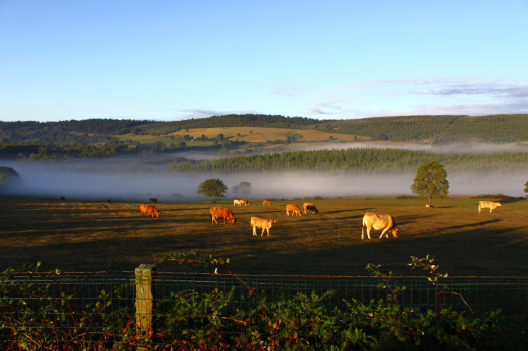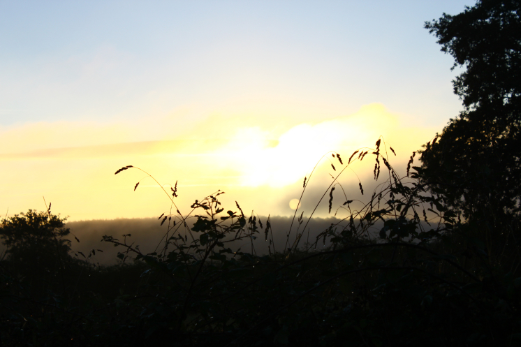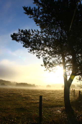Вышла в рассвет. Такая красота! Я же норммально не видела солнце 3е суток уже... не чувствовала его кожей... а теперь оно меня греет. Такое блаженство! Шла и боялась, что это ненадолго, но даже думать о дожде было страшно! И так красиво сегодня пробуждалась ото сна природа, буквально скидывала с себя ночную влагу в виде тумана. Солнце сквозь дымку облаков... умиротворяюще эти пейзажи на меня подействовали. Впервые за эти последние дождливые дни мне было по-настоящему приятно идти. Только коровы нарушали идиллию, взывая к корму... или чему-то другому... не знаю. Эти животные, по-моему, вообще не спят! Когда ночью я шла в первый день, они все звенели своими колокольчиками и сверкали на меня глазами во тьме. А утром рано они уже опять не спят… да и днем спящих коров я не видела, только отдыхающих. А как приближаешься к их пастбищу, так сразу все морды на тебя поворачиваются.