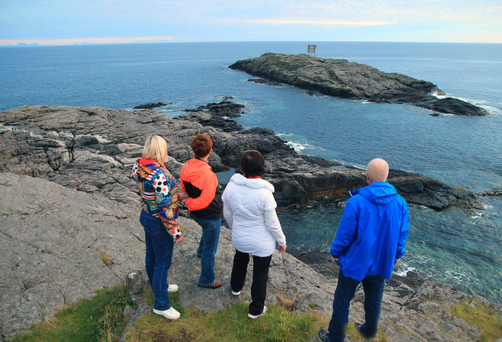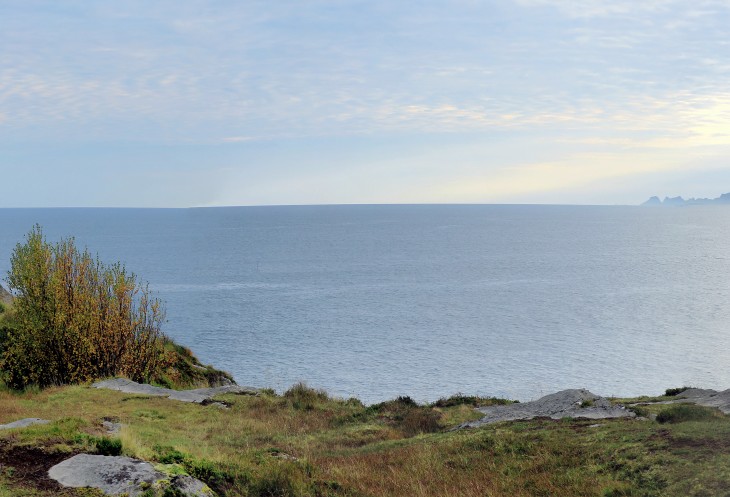 Температура градусов 17-18 и ни ветерка. На синем небе легкие облачка. Если смотреть прямо в океан (на север), вид реально такой, как будто мы не в заполярье, а на каком-то тропическом острове.