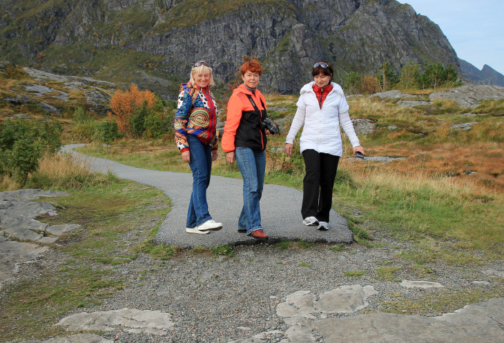 Однако, замечаю, Людмила как-то тормозится по сравнению с остальными, не уверенно шагает.