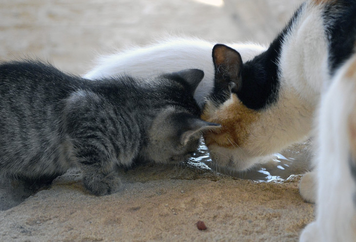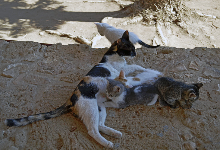 Прогулявшись по монастырскому двору , мы сели в тенечке возле беседки. Там жили маленькие обитатели - кошка и пятеро котят. Налили им водички,которую кошка,а за ней и котята с удовольствием вылакали).