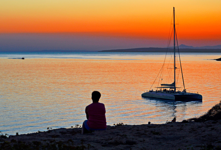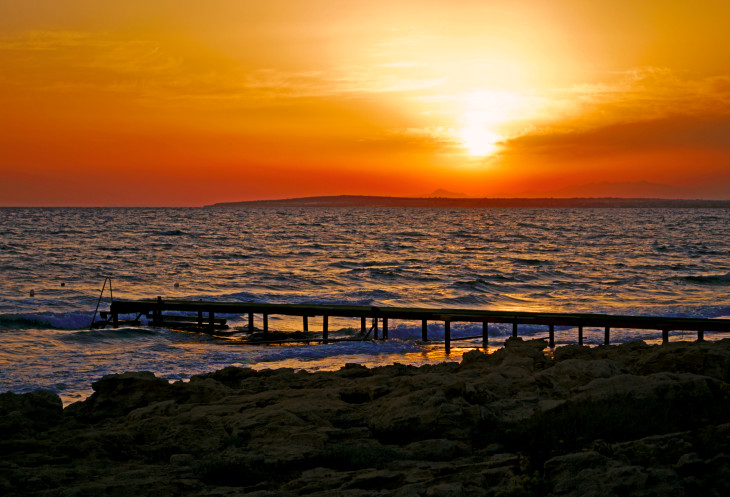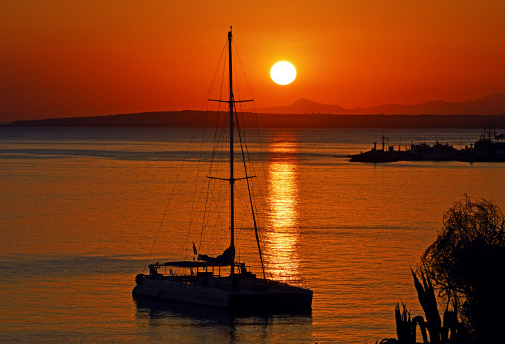 А еще здесь можно проводить солнце. Солнце уходит за горизонт,красиво подсвечивая небо и воду в море.
