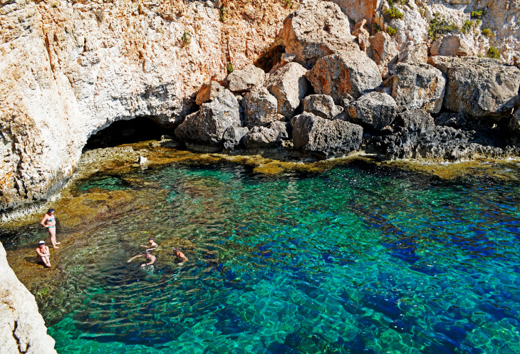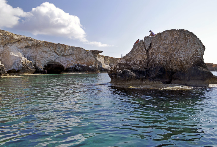 Можно полазать по каменистому берегу и посмотреть на пляж сверху.