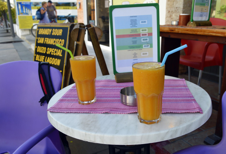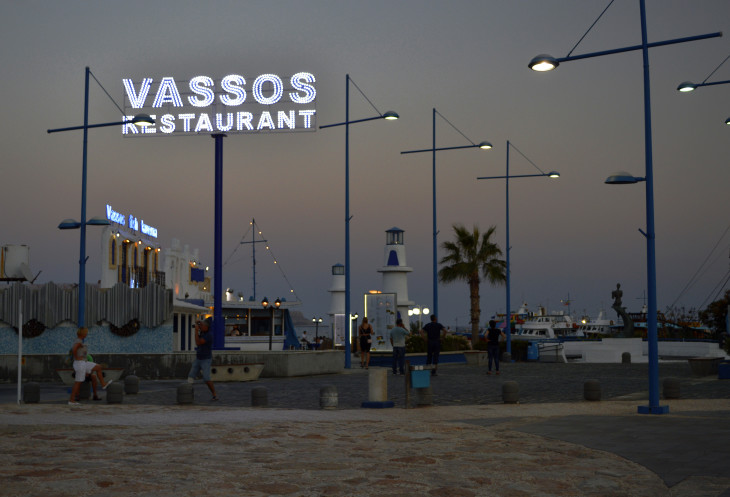 Поужинать решили в портовой таверне. Хотим отведать самое знаменитое кипрское блюдо - Мезе. Мезе бывает мясное и рыбное,но мы же в порту. Где ж еще поесть свежей рыбки? Заказывается блюдо минимум на двоих человек. Сели за столик,заказали Рыбное мезе и апельсиновый фреш.Ждем))