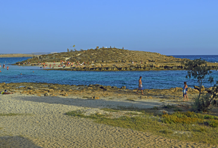 Люди снуют между берегом и маленьким островом. Мы тоже пошли.Островок небольшой,каменистый.С него хорошо видно весь пляж.