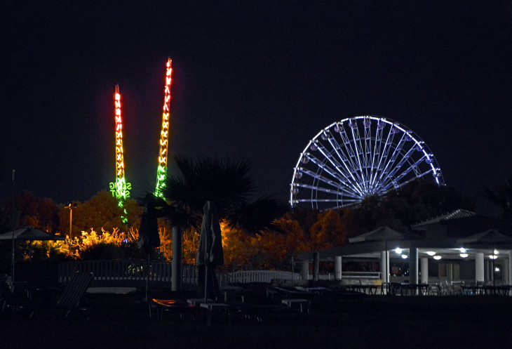 Уже стемнело и Луна-парк светился колесом Обозрения и Рогаткой.
