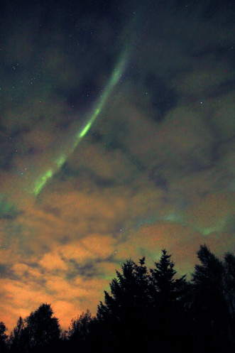 Это сияние действительно превосходило по зрелищности все, что мы видели до сих пор! (Уже потом, дома, я узнал из И-нета, что в эту ночь Сияние было видно даже в Питере!).