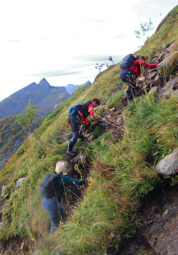 но, зато, все кругом истоптано и можно выбирать путь. Потихоньку взбираемся. Местами девчонки опять ягоды собирают!