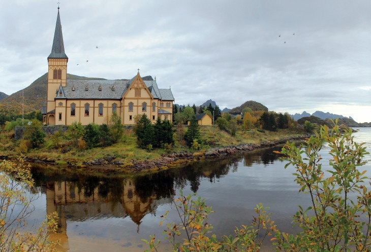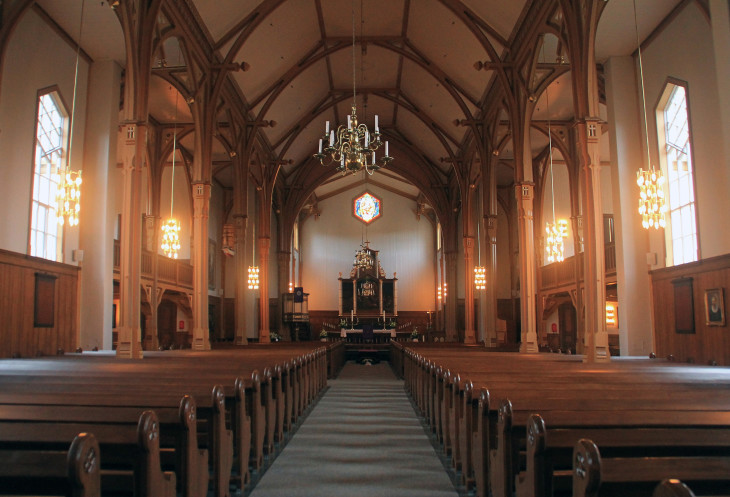 В отличие от наших церквей, здесь полный аскетизм и почти никаких икон, украшений. Мы с Алей видели такое в прошлой поездке по Норвегии, девчонкам в новинку.