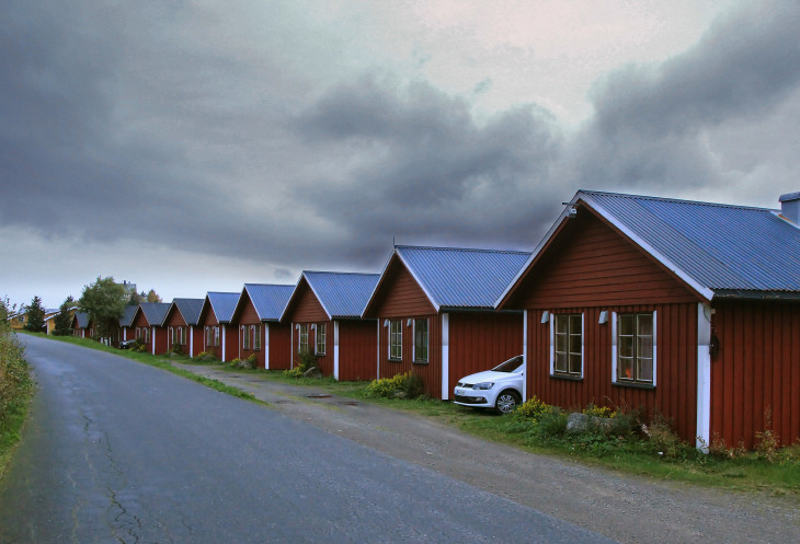 Часам к 5-6 вечера добираемся до намеченного кемпинга возле городка Кабельвог. Наш домик с краю, возле него видна машина: