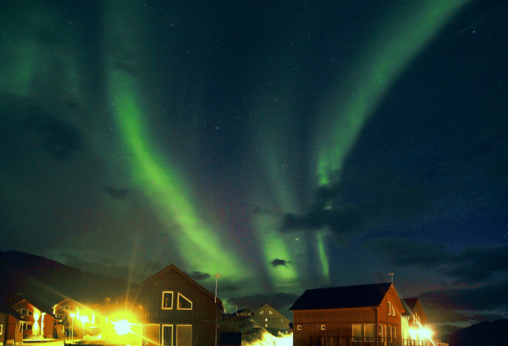 настолько силен свет Сияния, что ему совершенно не мешают горящие возле домиков уличные фонари: