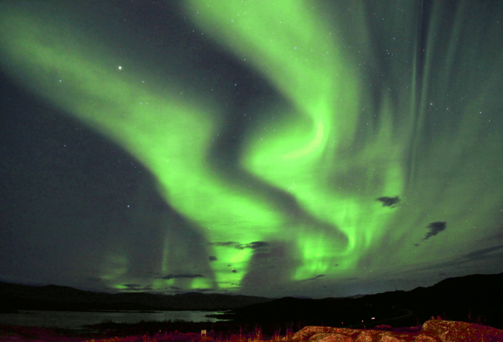 Я гляжу на извивающиеся в ночном звездном небе зеленые, иногда красноватые ленты и вспоминаю всю нашу поездку.