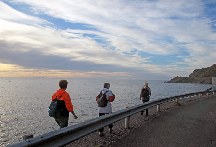 до которого метров 600 по асфальту, идущему вдоль берега океана параллельно автомобильному туннелю.