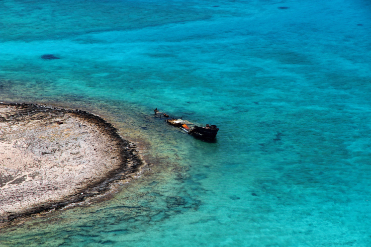 Жену и сына я нашел на пляже. Хотя, пляжем это место, находящееся у начала тропы к крепости, можно назвать с трудом. "Пляжик", с неудобным заходом в воду и морскими ежами. Но мой экипаж, оказывается, тоже не сидел на месте, а успел прогуляться в сторону затонувшего корабля - еще одной достопримечательности острова Грамвуса. Надеюсь, наш паром не постигнет та же участь :) Кстати, пора уже идти к нему.