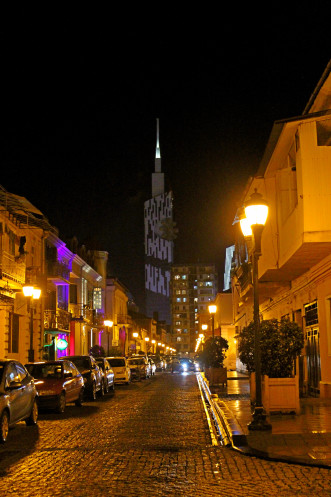 Немного отдохнув в квартире, мы вышли осматривать город при свете вечерних огней. Дождь накрапывал уже меньше и в принципе особого дискомфорта не вызывал.
