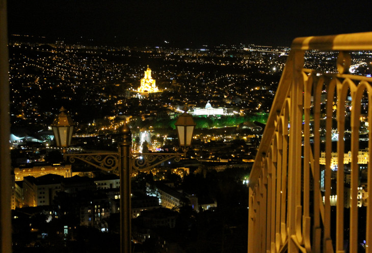 На горе Мтацминда расположена смотровая площадка, с которой открывается всеохватывающий вид на город Тбилиси.