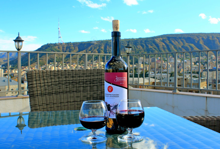 Упаковав вещи и вино к отъезду (а бутылок у нас было не много не мало 12 бутылок вместе с армянскими), мы провели свой последний вечер в Грузии на террасе отеля с вином и видом на ночной город.