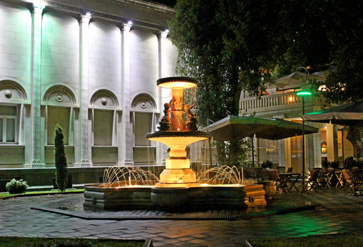 Фонтан, названный «Башня Чачи», представляет собой точную копию сооружения, которое украшало город в начале 20 века. В целях популяризации грузинского национального алкогольного напитка, один раз в неделю в течение 10-15 минут этот напиток льется из фонтана. Нам застать сей момент не удалось.