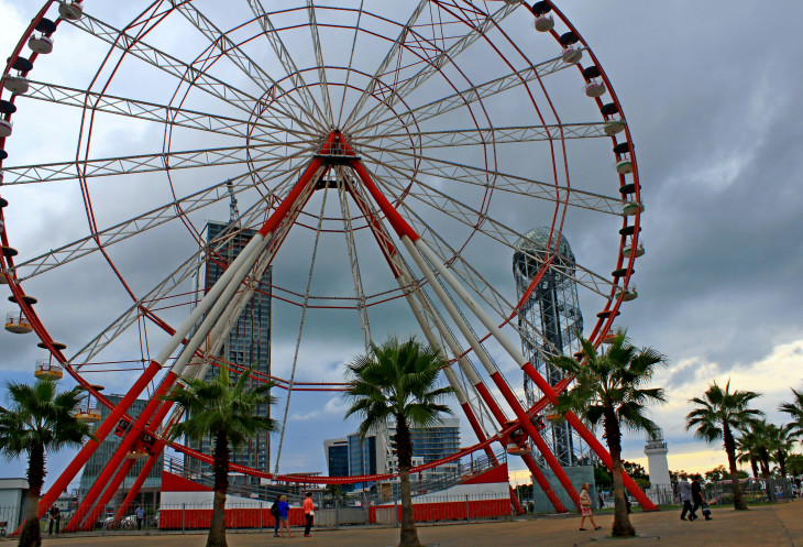 Всю красоту Батуми можно лицезреть с местного колеса обозрения. Этот маленький экстрим стоит всего лишь 3 лари. Один круг на этом колесе продолжается 10 минут. Оно поднимает на 55 метровую высоту, откуда виден весь Батуми.