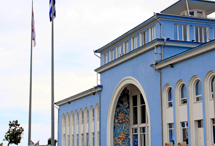 В противоположную сторону от классического здания морского вокзала, находятся современные постройки.