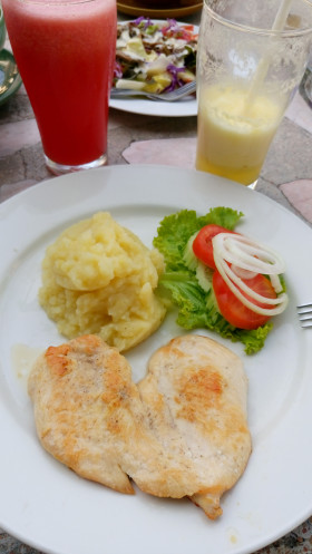 Меню как тайское. Так и европейское, что просто спасет вас, если с вами в отпуске маленький привередливый спиногрыз. Для деток - картошка фри, картофельное пюре, котлетки как жаренные, так и на пару; макароны и сосиски с кетчупом, куриное филе или ножка жареные, рис с омлетом и т.д. и т.п. Дети едят там с удовольствием. Стоит упомянуть тот факт, что все эти блюда АБСОЛЮТНО «No spicy» изначально. Пригодится это и для отравившихся. Кстати, пострадавшим от больного живота рекомендую крем-суп с курицей.