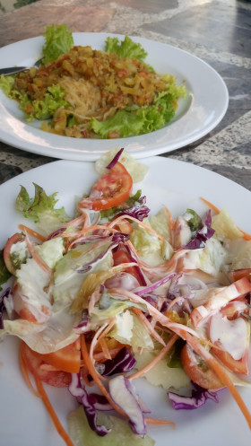 В обед мы на двоих брали один салат, один суп и одно второе какое-нибудь (иначе не съешь все), + попить выходило на 200-250 бат за всю трапезу. На ужин заказывали каждый себе свое сам (сидели мы всегда долго – делились впечатлениями от прожитого дня), не обходилось и без алкогольсодержащих напитков (к примеру, ром Санг-сам 0,3 – 250 бат, 0,5 – 350 бат, пиво чанг 0,6 – 90 бат)