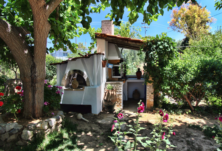 Как сие заведение называется мы так и не поняли, но и не особо важно. Для себя мы назвали его красивым греческим словом "Панорама". Главное, что хозяйка нашлась, и довольно быстро обслужила единственных посетителей, которые свалились ей как снег на голову средь бела дня :) Мало того, что все было вкусно, так еще было очень приятно посидеть под цитрусовыми деревцами, на которых красовались спелые плоды.