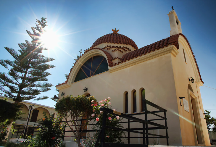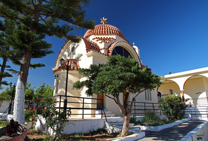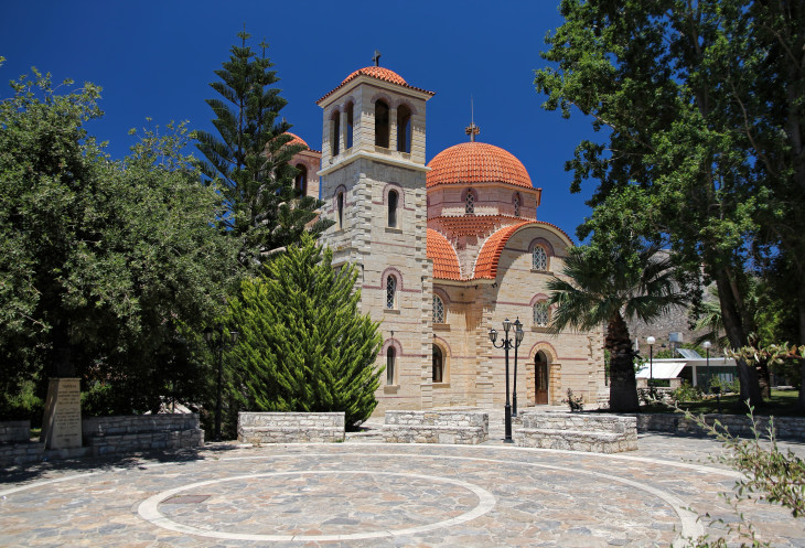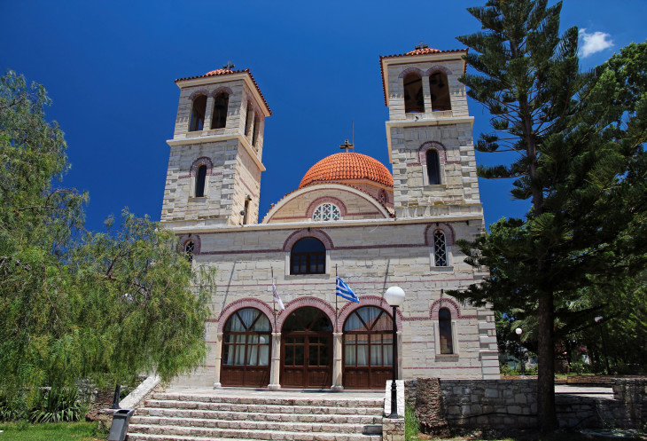 Ну все на сегодня, начинается ленивая часть отдыха. Отправляемся в сторону моря, только не в Бали, а в Панормо, там, наверное, поменьше людей на пляже. Минуем Аксос, снова привлекая всё внимание местных к себе, проезжаем еще одну сонную деревушку под названием Гаразо... Нет, не проезжаем, что это там виднеется среди деревьев? Ух ты, деревня деревней, а какой серьезный храм!