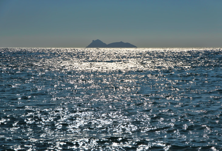 Вода здесь оказалась прозрачной и не очень теплой, но нас этим не испугаешь :) Сын, правда, долго в море не засиделся, нашел себе занятия на берегу. А мы медленно качались на волнах, любуясь островком, придающим виду особую привлекательность.