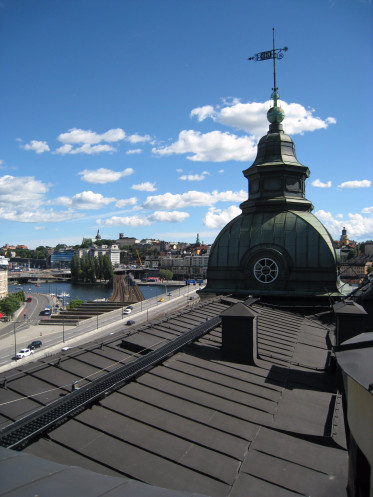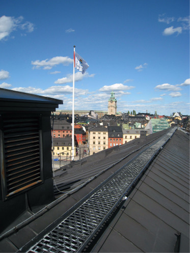 Обожаю чердаки и крыши. В детстве бабушка знала, где меня искать, если я надолго пропадала из поля ее зрения. Поэтому, оказавшись в Стокгольме (была здесь проездом, всего лишь один день), ни минуты не колебалась, когда предложили экскурсию по крышам, хотя ее цена «кусалась». В Стокгольме есть откуда взглянуть на город с высоты. Но мне показалось заманчиво сделать это в самом центре его, на острове Риддархольмен, на крыше старого здания стокгольмского парламента.