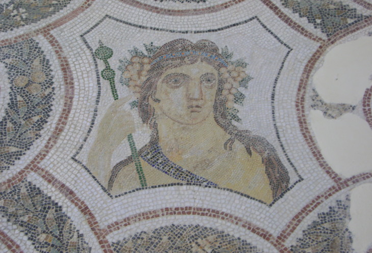 Ну как не улыбнуться мозаичному портрету бога вина Дионису!