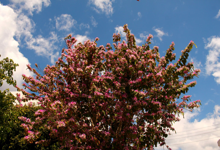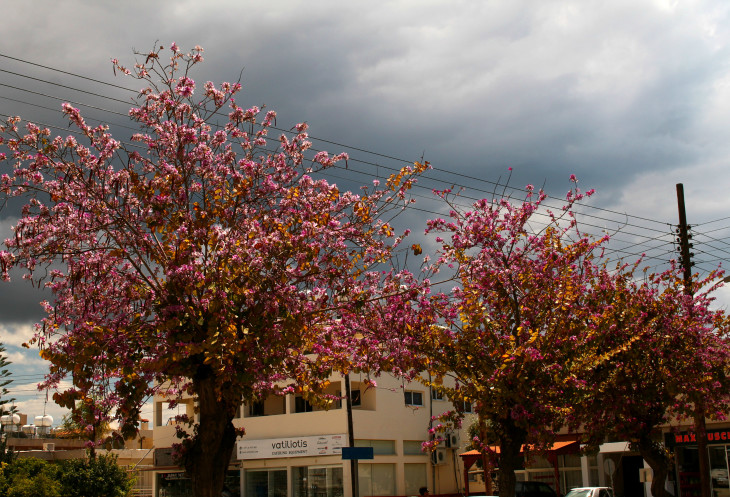 Пафос встречал меня чумовым ветром, жгучим солнцем и... теми же самыми цветущими розовыми деревьями, которыми я любовалась в Лимассоле! Вот чем прекрасен на Кипре апрель - летом и даже в мае уже такой бело-розовой красоты нет.