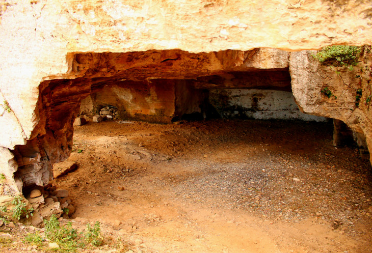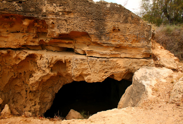 А слева от дороги, скрытый за средиземноморскими соснами и прочей буйной растительностью, - вход на гору Фабрика через самую большую пещеру.