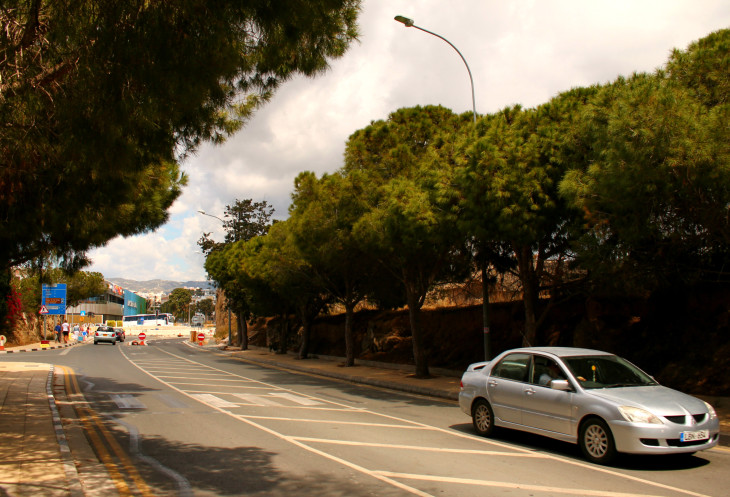 Поскольку в Пафосе в прошлый отпуск на Кипре мы с дочерью уже были, вопрос - как и на чем туда доехать - уже не стоял. Но теперь я уже знала, что на конечную остановку всех автобусов к Новому порту ехать необязательно, у всех междугородних автобусов есть остановки в городе. Самая популярная у туристов остановка - та, которая находится "на кругу", на перекрестке всех основных дорог - посередине пути от Старого порта и Лимассол Марины к Лимассольскому замку. Здесь рядом находится и один из самых популярных у туристов сувенирных магазинов.