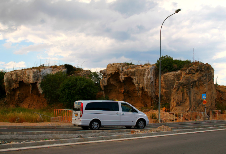 Спускаться к морю от верхней автостанции в Пафосе можно или на автобусе, или пешочком - примерно за полчаса, если не застревать. Автобус - те же 1,5 евро, что и Лимассоле, и так же действует "уан дэй тикет" за 5 евро. Я пошла пешком - чай, не впервые, дорогу знаю... И с горочки к морю проще, чем обратно. Тем более что целью номер 1 у меня на этот день была находящийся не на побережье, а на перекрестке главной улицы Apostolou Pavlou и улицы Spyrou Kiprianou (это примерно в 10 минутах ходьбы от порта) экзотический по своему виду и внутреннему содержанию холм со странным названием Fabrika Hill. Три года назад мы попали сюда с дочерью поздно вечером, на закате здесь было очень красиво, но самое интересное мы не посмотрели - лазить по подземным камерам, бывшим каменоломням-катакомбам, в сумерках было как-то стремно.