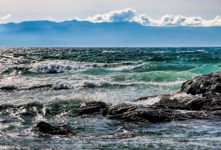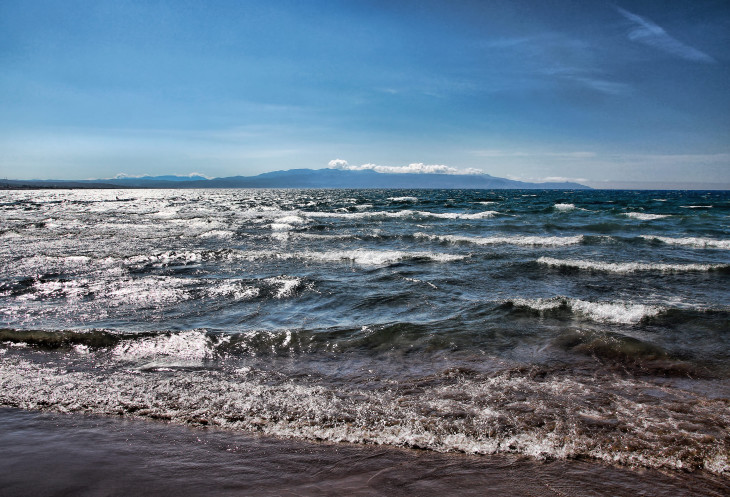 Короткий переезд, и вот мы уже едем вдоль берега моря. Пейзаж - просто глаз не оторвать! С такой натуры картины пишут... Значит, не сфотографировать невозможно :) Останавливаемся на минутку у одного маленького пляжика...