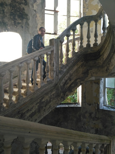Входная дверь была приоткрыта и мы выстро нырнули в проход. Внутри оказалась включена лампочка, которая висела на хиленьком проводе. Мы сначала испугались, что кто-то здесь живет, но покричав не услышали ничего в ответ и пошли по давно заброшенной лестнице. Я не видела такой красоты. В заброшенных местах есть что-то, что пленяет, заставляет улыбаться во весь рот и идти так тихо-тихо, как мышки.