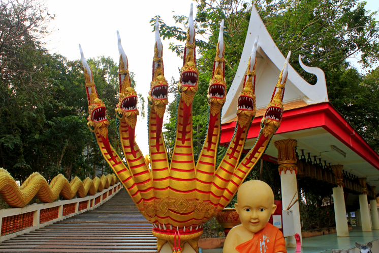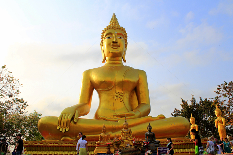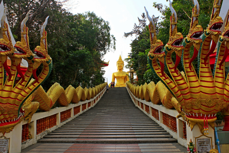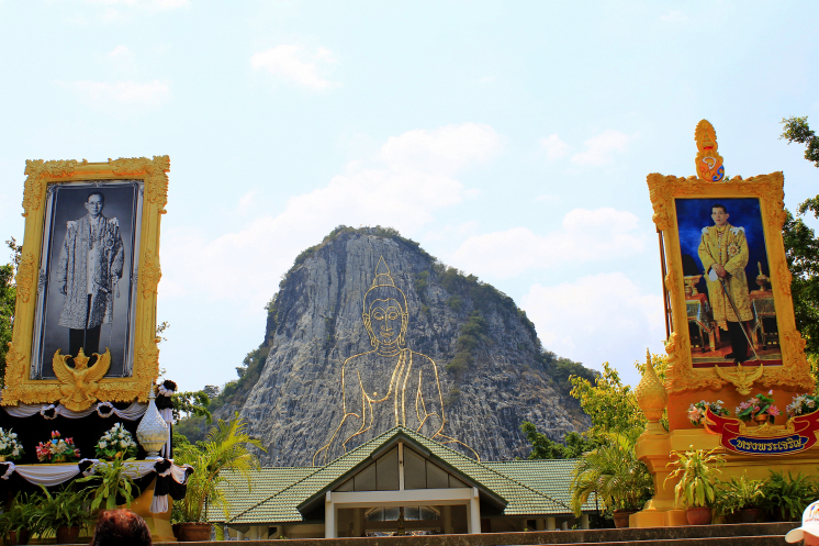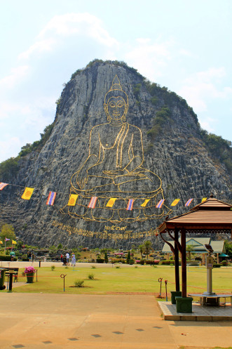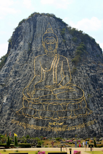 Гора золотого Будды Кхао Чи Чан - самое большое скальное изображение Будды. В 1996 г. сын покойного короля Рамы 9го (ныне здравствующий Рама 10ый) инициировал создание золотого изображения Будды в честь 50-летия правления отца. Проезжая мимо, он заметил отвесную скалу не природного происхождения и кинул клич стране на сбор средств. Средства на золотого Будду собирали всей страной, принимались любые пожертвования (самое значительное конечно же совершил сын).