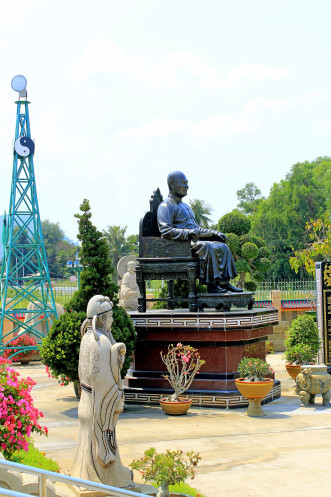 С балкона третьего этажа открывается площадка с многочисленными статуями известных китайских личностей и шаолиньских монахов. Словно большая шахматная доска с фигурами в человеческий рост.