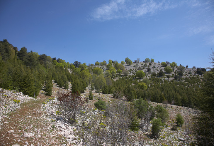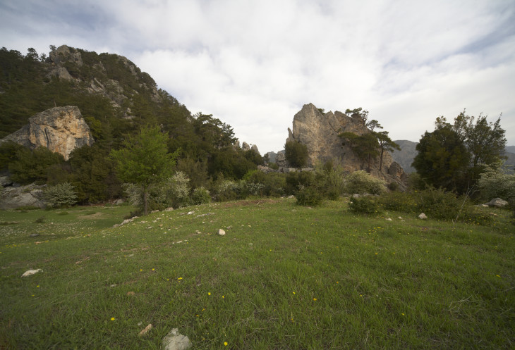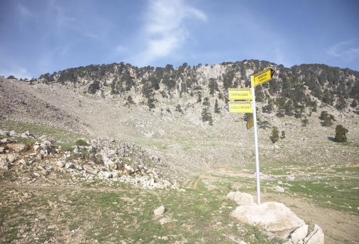 Встаем пораньше и за ходку доходим до места начала подъема на Тахталы. Сама гора не на тропе, но тропа на нее есть, и хорошая, а Ликийский путь проходит только через седловину. У развилки троп оставляем рюкзаки и налегке идем наверх.