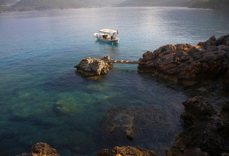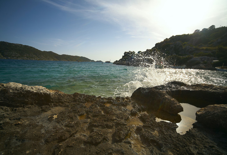 Собственно, на этом наш маршрут и заканчивается – дальше решаем не идти, потому что завтра нам надо быть в Анталье, а следующий участок тропы опять уходит далеко от дорог. Так что спускаемся в маленькую бухточку чуть в стороне от Калекёя и там полдня купаемся в море. Вода уже действительно теплая и очень прозрачная. Даже жалко, что у меня нет маски для ныряния – мне почему-то кажется, что камни на дне – это не просто камни, а какие-то древние строения. А что еще может показаться, если ныряешь в воду прямо с римских ступеней (или они ликийские?) – здесь древние позаботились о нас.