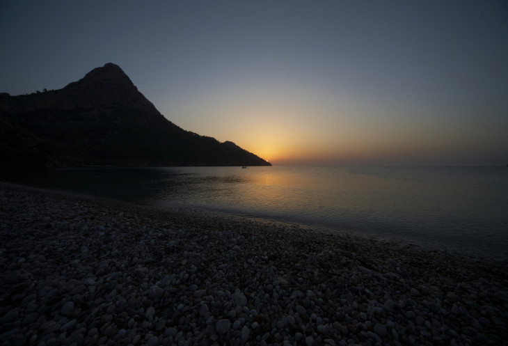 Адрасан – еще один курортный городок, еще меньше и тише, чем Чиралы. Пляж мне здесь понравился гораздо больше – красивая ровненькая галька мне нравится гораздо больше темного песка, да и мысы по краям бухты очень красивые. И здесь мы, наконец-то, купаемся в море. Вода холодная, да и уже пришла вечерняя прохлада, так что еще теплый пляжный душ оказался куда приятнее. Зато можно сидеть и смотреть, как вода из голубой становится белой, а потом темнеет вместе с небом над головой.